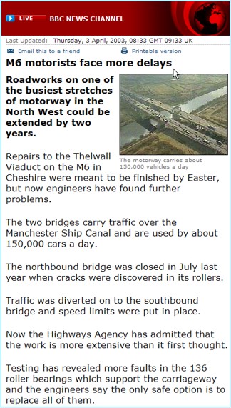 ◊ 对于1996年翻新的长城高架桥,2002年发生了滚珠轴承的断裂事故