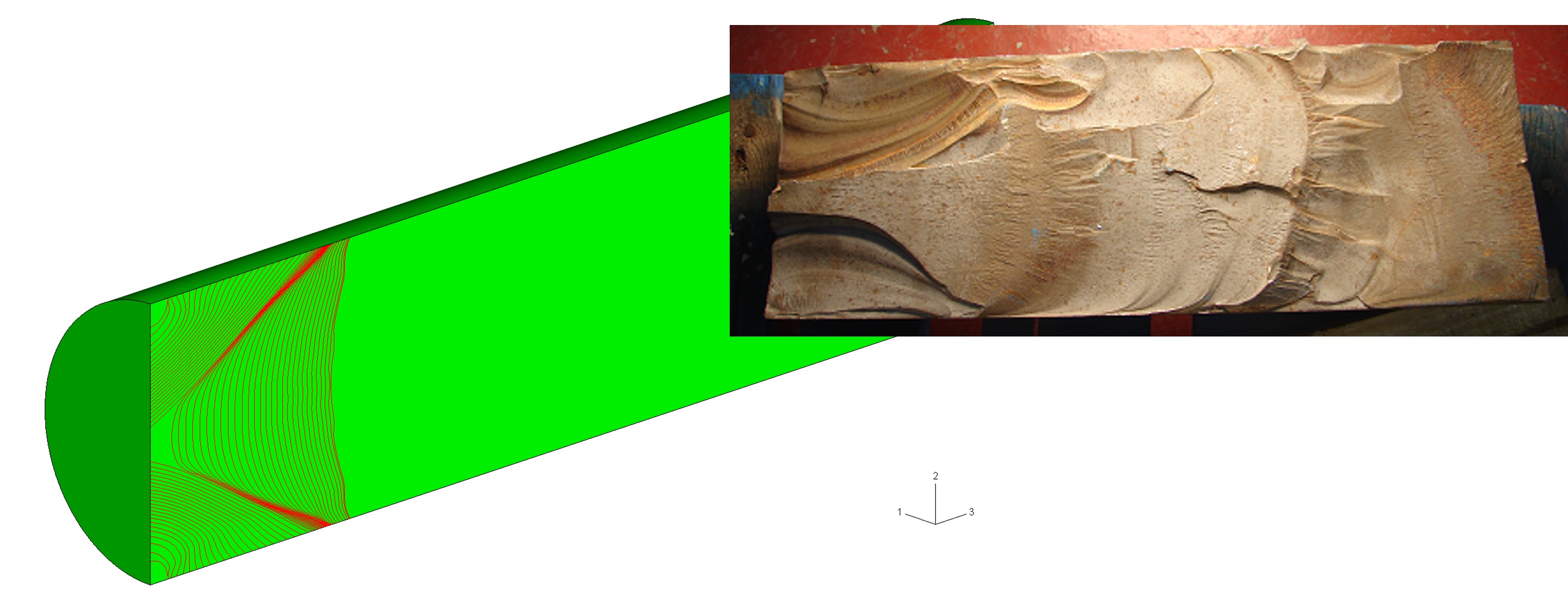 ◊ 分析中可以给出裂纹面扩展轮廓,用于与实验结果之间的对比分析