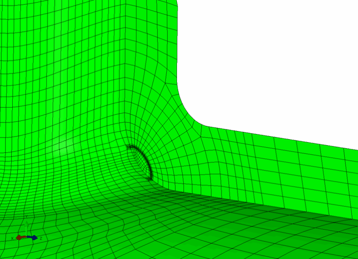 ◊ 仅需要将一个单元替换成crack-block单元,软件自动完成定义裂纹前缘